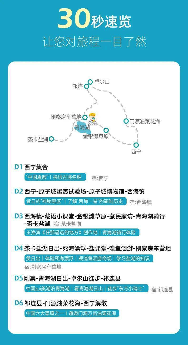 游玩结束后,爸爸妈妈可以和孩子一起在湖边体验 【青海湖骑行】(免费赠送),围绕着青海湖一圈的环湖公路是中国zui美的公路之一,路旁有蔚蓝的湖水、碧绿的草场、金黄的油菜花田,还有遍野的牛羊和绵远的山丘。这里有专门的骑行绿道,安全舒适,蓝天白云碧湖,骑上一辆自行车慢慢体会美妙的风景,给你前所未有的骑行体验。