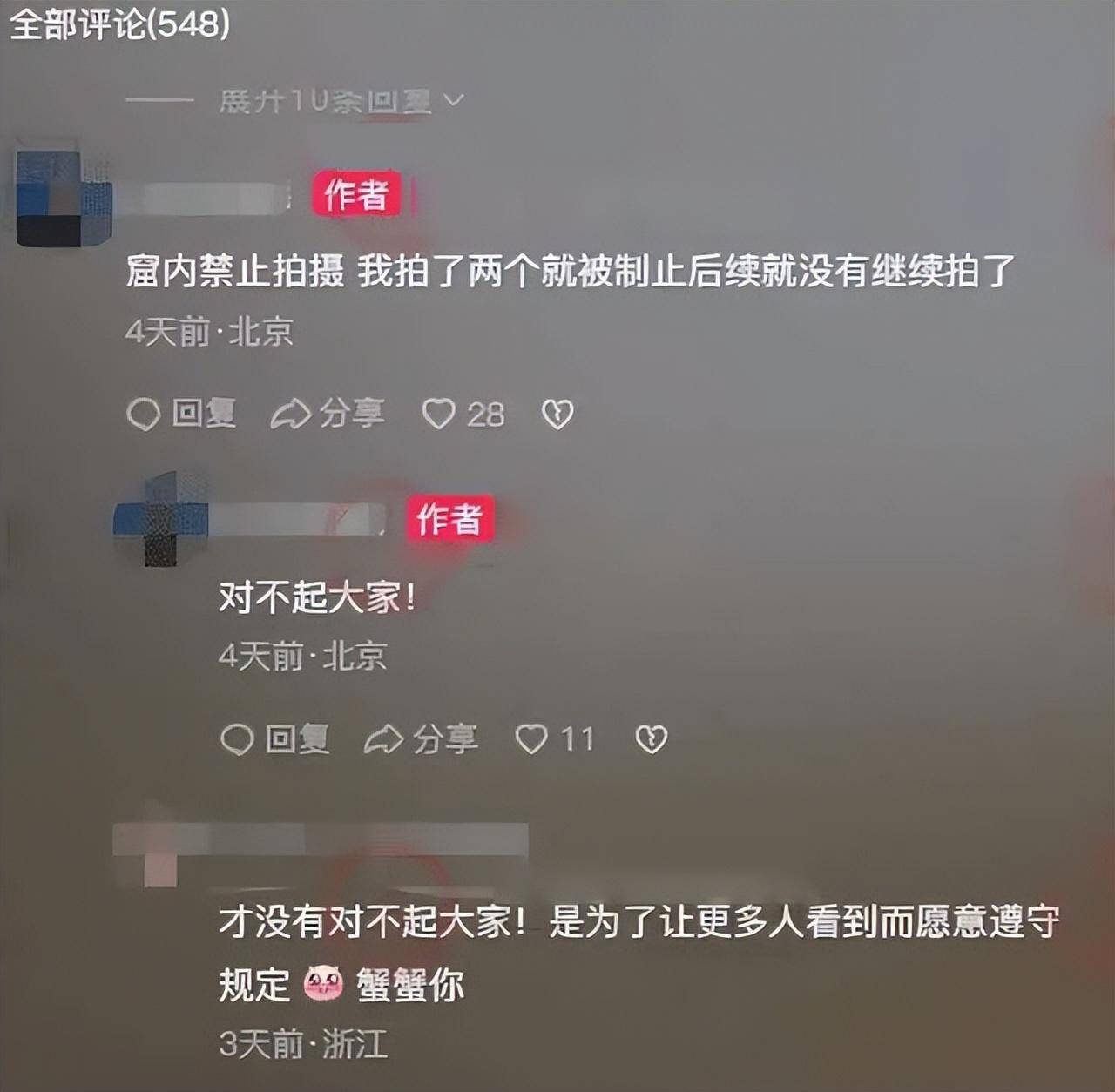 博主见网友情绪越来越高,只好出面道歉:“溶洞内禁止拍照,我拍了两段视频就被屏蔽了,那就拍吧。”更多照片。他做的是我。“错误,对不起大家。