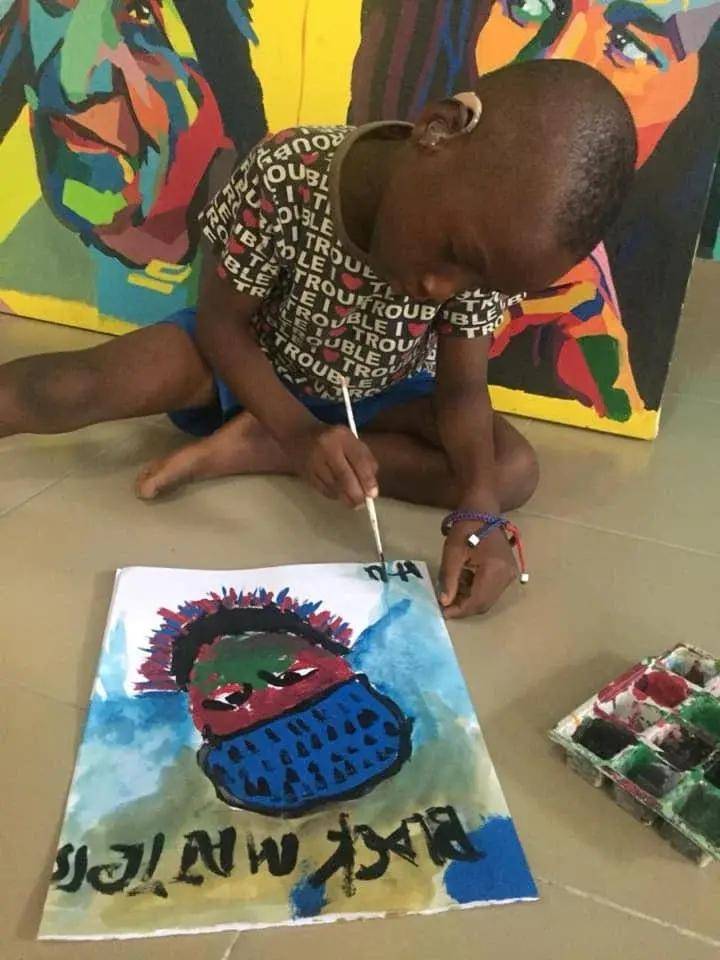他经常和洛文的孩子一起玩耍嬉戏,也喜欢画画和踢足球,同样幸运地拥有了天真烂漫的童年时光。