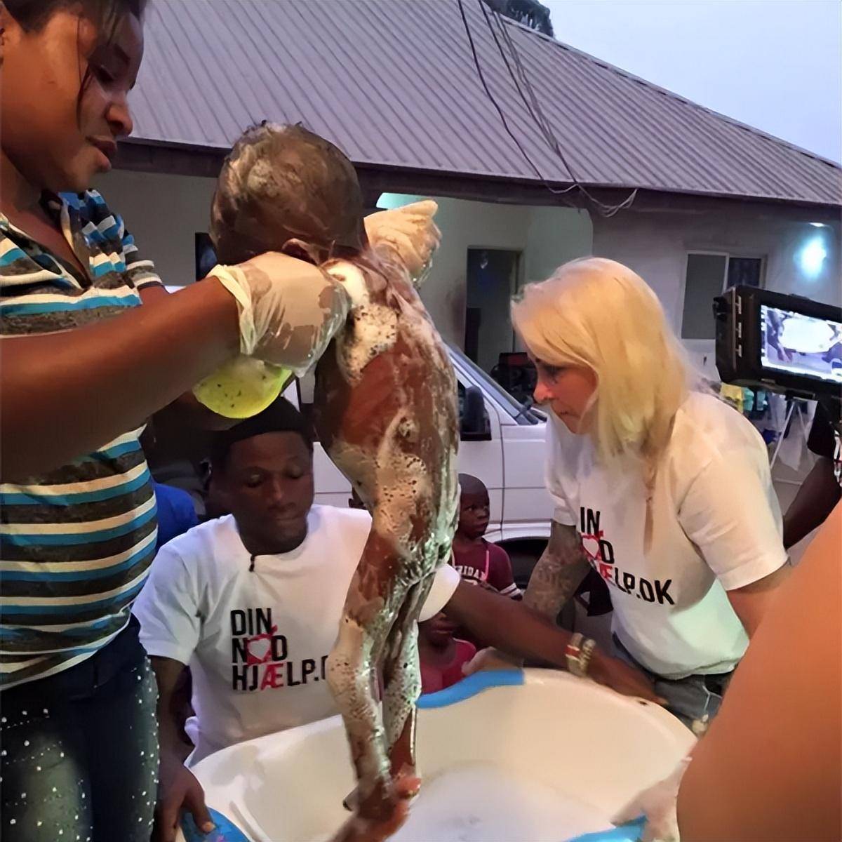 2016年,来自丹麦的白美女洛文到非洲旅游时,一名瘦得皮包骨头,一丝不挂的非洲小男孩,踉踉跄跄向她走来。