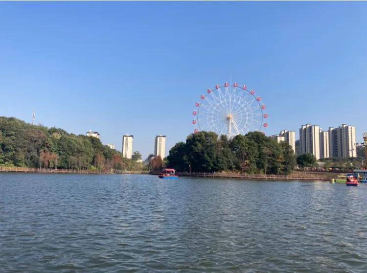 有环湖木栈道观景步道,有大片湖区可以划船,有摩天轮可以攀岩,还有亲子游玩的Ychun乐园。