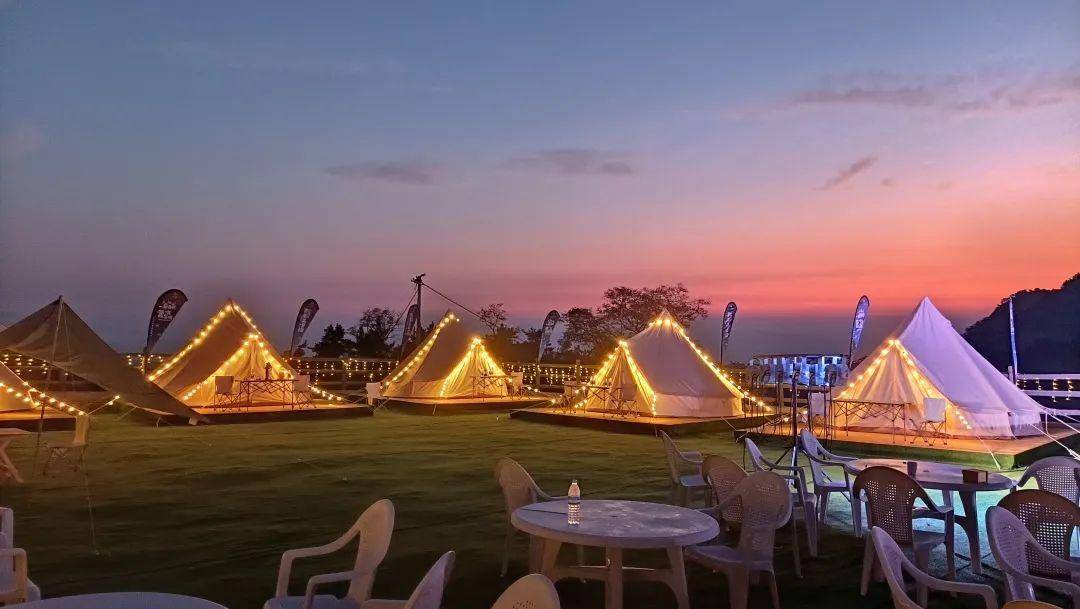 乐溪谷·高山露营地营地由印度式、蒙古包式帐篷和帆船、三角形轻型豪华帐篷组成,一次可容纳110多人。