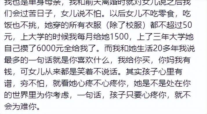对此,网友议论纷纷,评论的走向也是片面的。大多数人都对这位女大学生的妈妈表示心疼,也有网友感同身受,认为这位妈妈简直太惨了,如果她真的爱自己的女儿,就不会这样逼妈妈了。