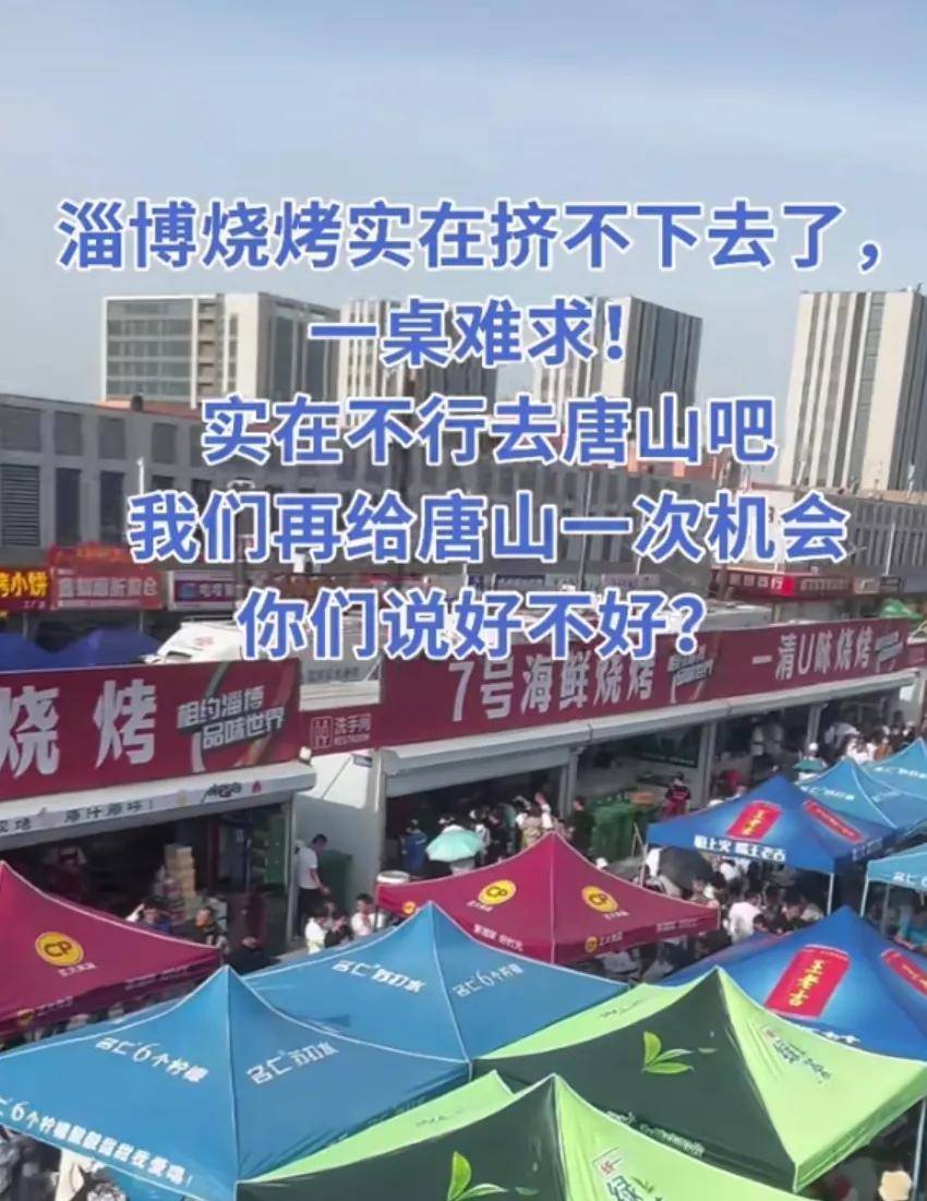 “淄博烤肉人多,挤不进去,一桌难求,找不到就来唐山吧!”