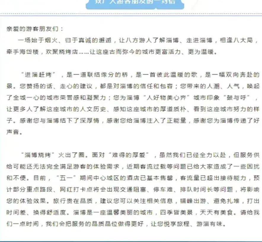 “提醒淄博,5月1日客流已超接待能力,跑错峰,打车久了,换个舒服的”