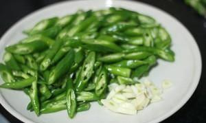 4、把花椒斜切成长条,这样切出来的炸花椒非常入味。大蒜切片或切块。