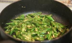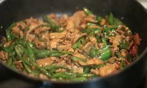 9.倒入青椒,大火炒至表皮起小泡泡。加少许酱油。