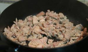 10.倒入之前炸好的肉片,趁热拌匀,加盐。