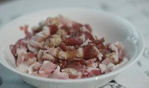 2.将五花肉切成薄片。五花肉从冰箱里拿出来,没有完全解冻,很容易切开。连我的手都可以切得很薄。