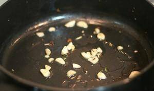 8.倒入尽可能多的油。湘菜要放油。加入切好的大蒜炒香。
