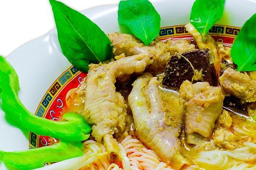 其次这道美食罗江豆鸡,是一道四川德阳市罗江县的著名小吃,听到名自以为是鸡制作而成的,其实就是一道豆制品素食,至今已有近百年的历史了。罗江豆鸡不仅是一道豆制素食品,还是佛教的高级菜肴。来到这里旅游的人们,都会带回去一些方便的食品带回去给亲朋好友。德阳这道名小吃罗江豆鸡,在川菜和众多食品中也是有很高的声誉的。这道菜不仅是餐桌上的一道美食,更是在休闲娱乐的时候的一道零食。制作方法也是很简单,主要就是以豆皮制作而成的,豆皮上粘点自己口味喜欢的配料,那豆皮之间充满了麻油味,像是鸡肉一般,真的是奇香诱人,咸辣鲜麻,真的是越吃越过瘾。