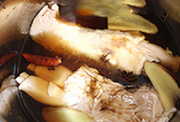 第二步:将牛津清洗干净,在高压锅内放入各种香料和佐料,然后再加入料酒,高压蒸一个班小时,将牛津煮烂。