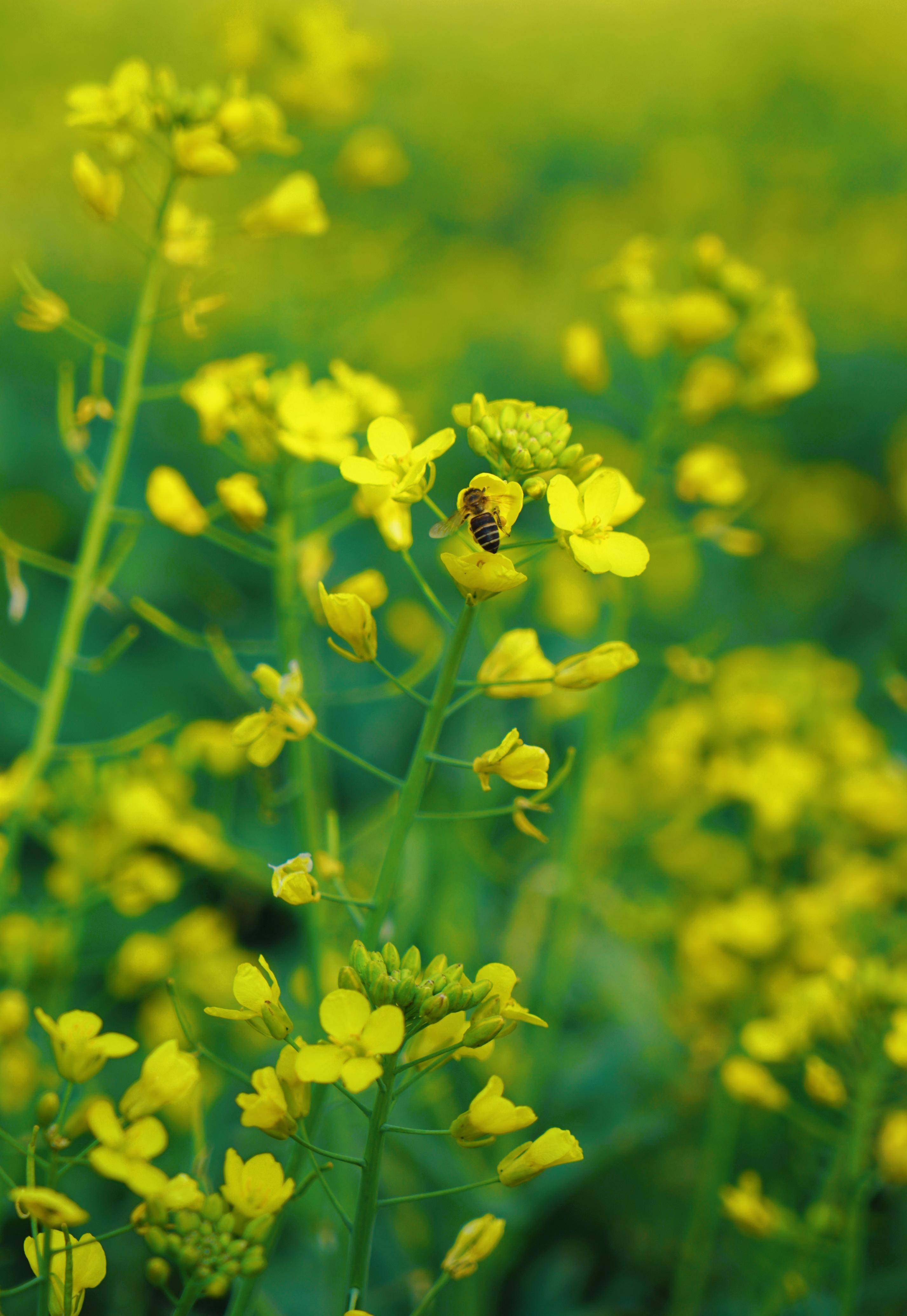 ↑2023年3月7日在浙江省湖州市安吉县天荒坪镇余村村拍摄的油菜花田里的蜜蜂。CICPHOTO/刘潋 摄