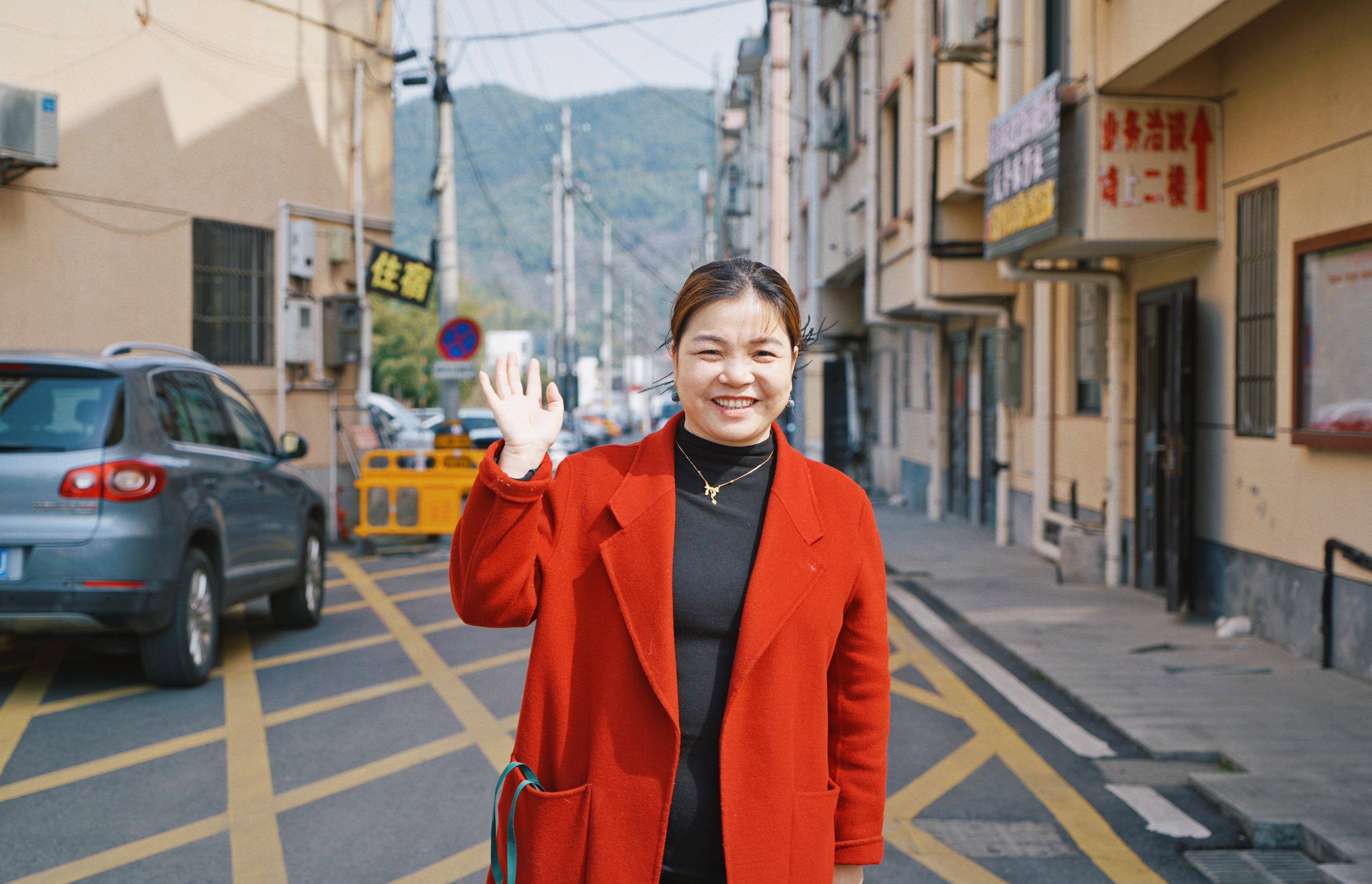 ↑2023年3月7日,在浙江省湖州市安吉县天荒坪镇余村村,村民与路人热情地打招呼。CICPHOTO/刘潋 摄