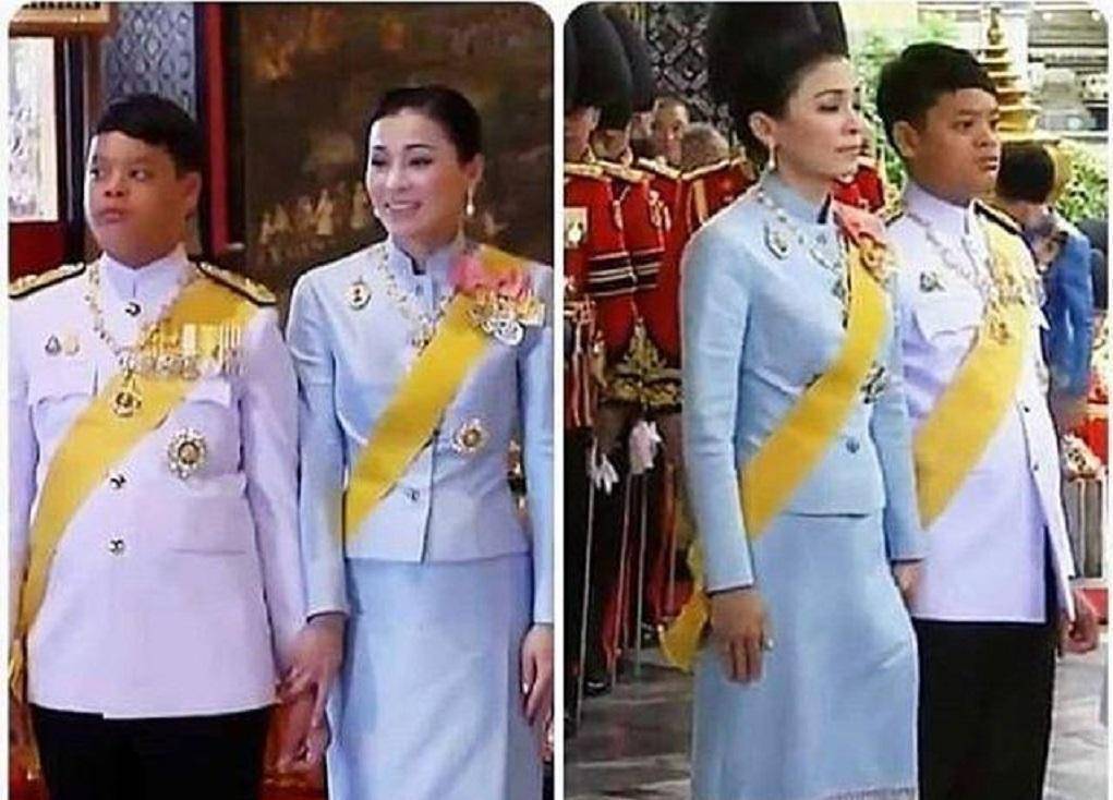 我们都知道泰国还是一个比较传统的国家,所以对于民族服饰很看重,在重要场合的时候,提帮功发身穿白色的制服,还要戴上黄色的斜肩带,和苏提达王后站在一起,要是不知道的,还以为是亲母子。苏提达王后也是一个活在规矩中的人,穿浅蓝色的传统泰服,下面是半身包臀裙的样式,将紧致的身材线条之美展现的淋漓尽致。苏提达王后抓着提帮功王子的手,这样的画面真是温馨。