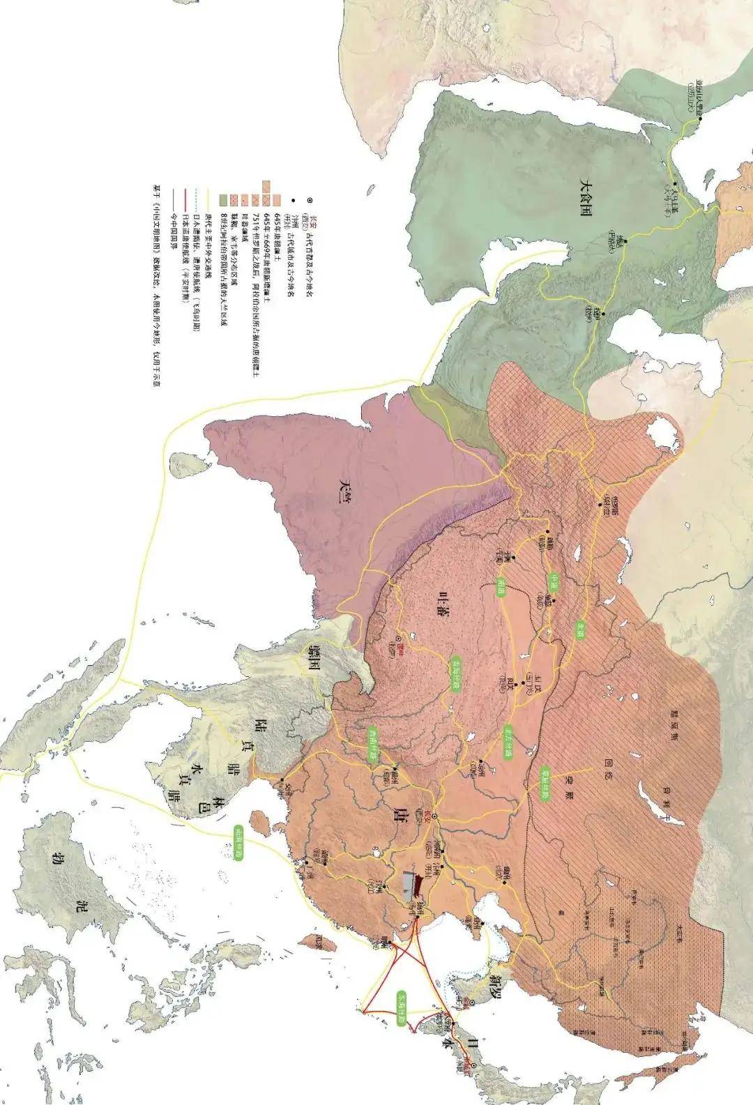 ▼ 扬州唐代主要对外交通路线图