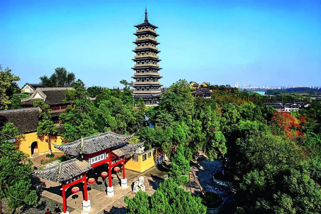 大明寺,曾名西寺、栖灵寺、法净寺,位于蜀冈中峰上。唐代扬州高僧鉴真曾在此居住讲学。大明寺附近有栖灵塔,它是扬州境内最高的佛塔,建于隋文帝仁寿元年(601 年),被誉为“中国之尤峻特者”,李白、高适、刘禹锡、白居易等都曾登临此塔。