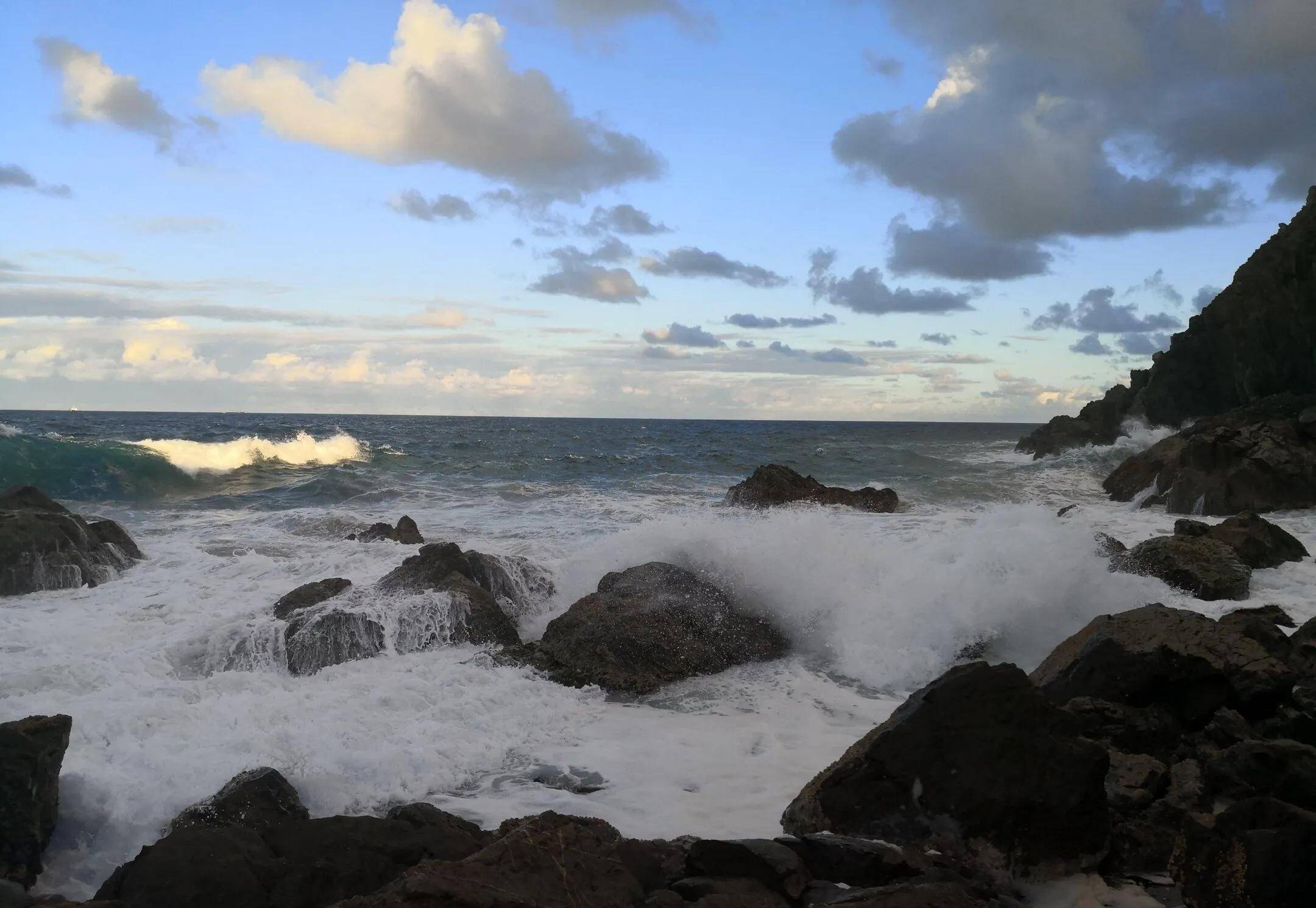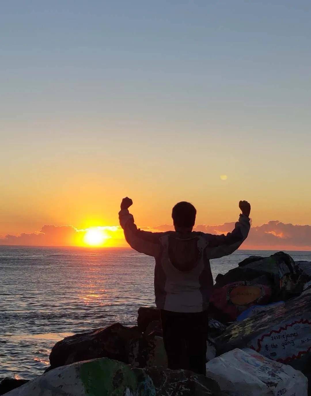 面对着大海,我们边走边欣赏着落日余晖,欣赏下方壮观的峭壁岩石、碧海拍岸的丽景,感受着生活的美好与快乐,一路旅途的所有疲惫都烟消云散。
