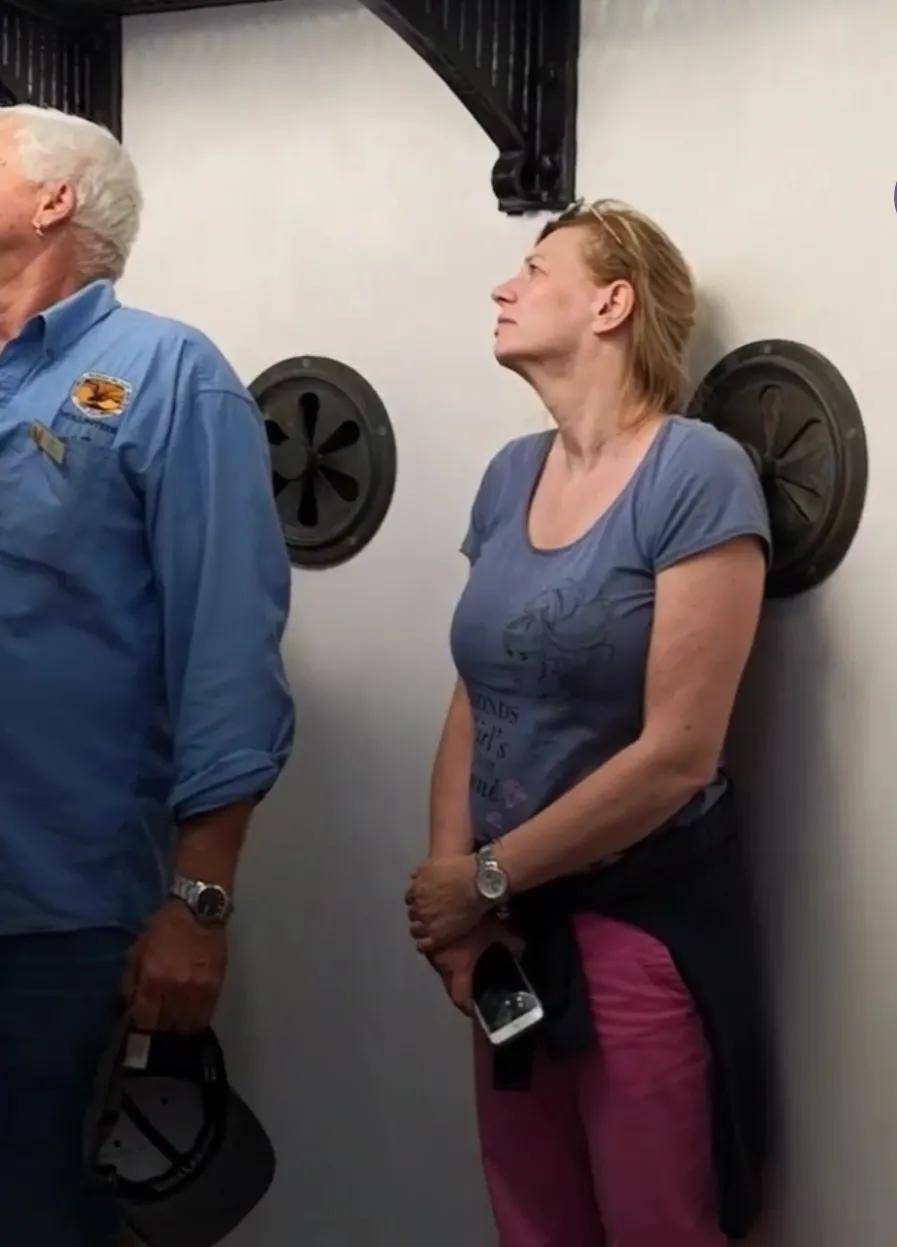我们参观了灯塔底层的博物馆后,看到通向登塔楼梯的门前有两位50岁左右的澳洲夫妻带着20岁左右的年轻女子在等候,我们也站在了那里。紧关的门上挂着一个牌子,除了外文还有阿拉伯15.30的数字,里面不断传出讲话的声音。