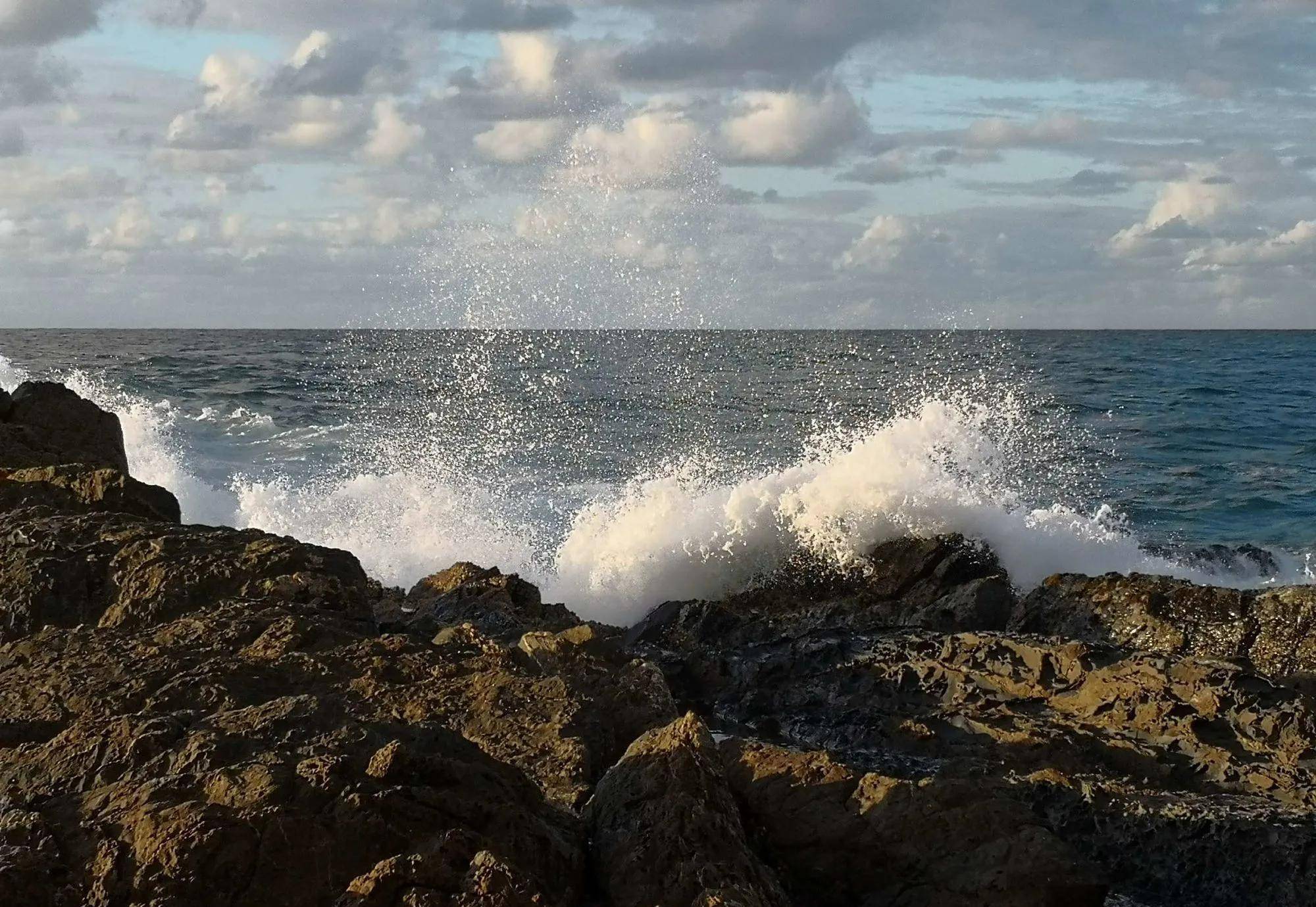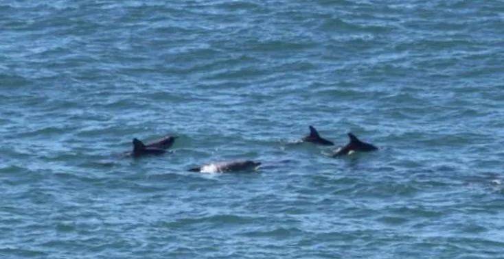 一阵人声的喧哗把我们吸引了过去,这时守塔老人一边大声说话,一边指着大海的深处,我们顺着老人指引的方向望过去,海面上有几个黑色的影子,时隐时现,啊!鲸鱼,真是太幸运了。