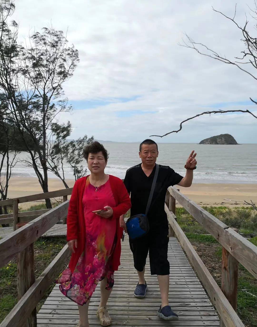 这时走过来四个游客,他们是当地华人拉着国内江苏的亲朋来游览拜伦湾的,他们游览了两个多小时,准备走的,听说我们是房车自驾,非常的羡慕……。