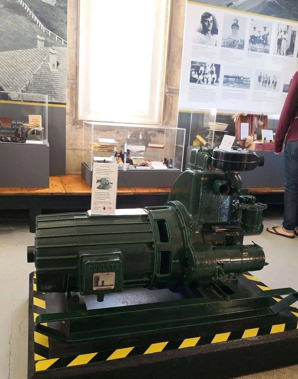 灯塔是开放的,可以进入一楼参观。中间有一个门,是通向登塔的步行楼梯。左右两个房间陈列着发动机、灯塔的备品备件及有关灯塔的书籍图册,介绍着灯塔的历史,房间里有一股浓浓的柴油味道。