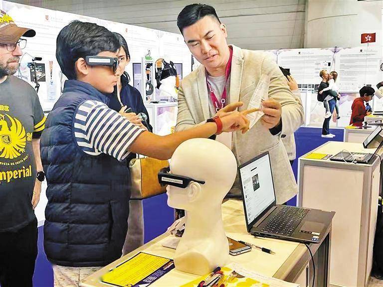 一通投诉电话,就这样成为萧启颖创业路上不断精进的动力。2021年,为改善视障用户在走路时需要一只手拿手机进行智能识别,一只手用盲杖探路的情况,萧启颖和团队推出适配应用程序的悦声智能眼镜,更加便捷地为视障群体提供辨别文字、颜色及与义工实时沟通等功能。凭借操作简易、外形轻便等特点,该智能眼镜还获得2021年日内瓦国际发明展银奖,2021香港资讯及通讯科技奖智慧市民(智慧共融)奖铜奖。
