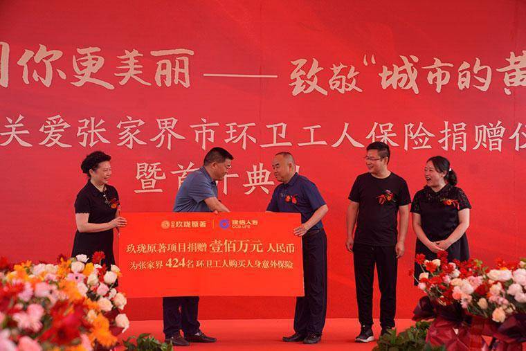 作为今年市区首个新开盘的地产项目,盛典上玖珑原著项目开发商张家界中优温泉谷置业有限公司向张家界市环境卫生管理处捐赠了人民币100万元用于市城区424名环卫工人购买人身保险,为感谢企业的爱心之举,市环境卫生管理处也赠送了感谢锦旗,同时张家界爱盟公益协会也向该企业授予爱心企业称号,此举也充分体现了该企业的社会责任感,也希望更多的企业家们能投入到社会公益事业中。