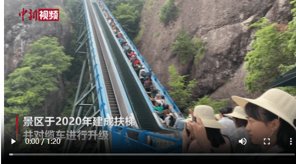 游客一进入景区,就能够先坐缆车,再乘扶梯,直通山顶,因此被戏称为“懒人福音”“一座不用爬的山”。神仙居旅游集团副书记、副总经理陈浩泽向记者介绍,为方便老人、小孩等登山游玩,提升旅游舒适性与体验感,景区于2020年建成扶梯,并对缆车进行升级,改变了过去需要走30分钟山路才能坐缆车的情况。2021年,景区游客量首次突破100万人次。