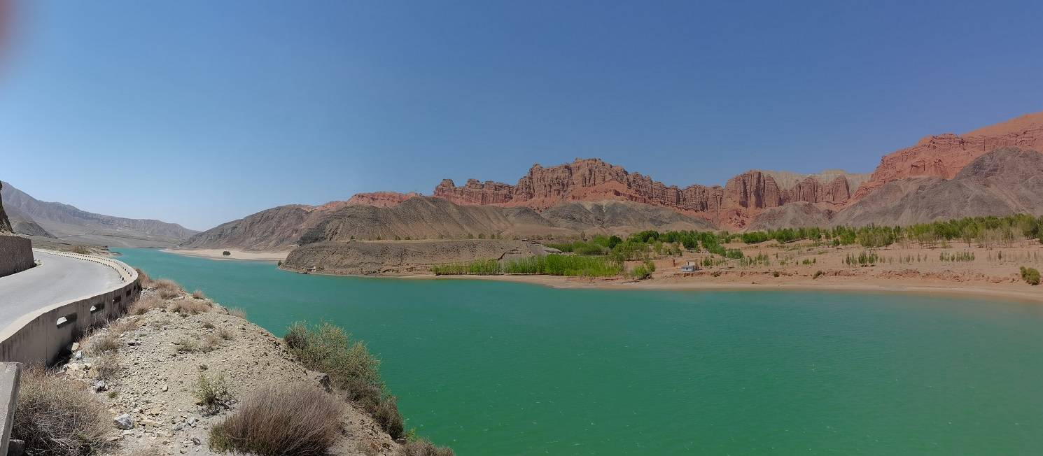 据说,前外交部长钱其深到青海贵德县调研,曾经说过“天下黄河贵德清”。还真不是吹的,从循化到贵德的路上,沿盘山公路要翻越一座山,山这边的黄河因大坝拦截形成一个清澈的人工湖,而到了山这边,黄河就像是一条流动的绿色翡翠玉带,在丹霞地貌大山的映衬下,山与水构成的画面显得特别的令人惊艳。