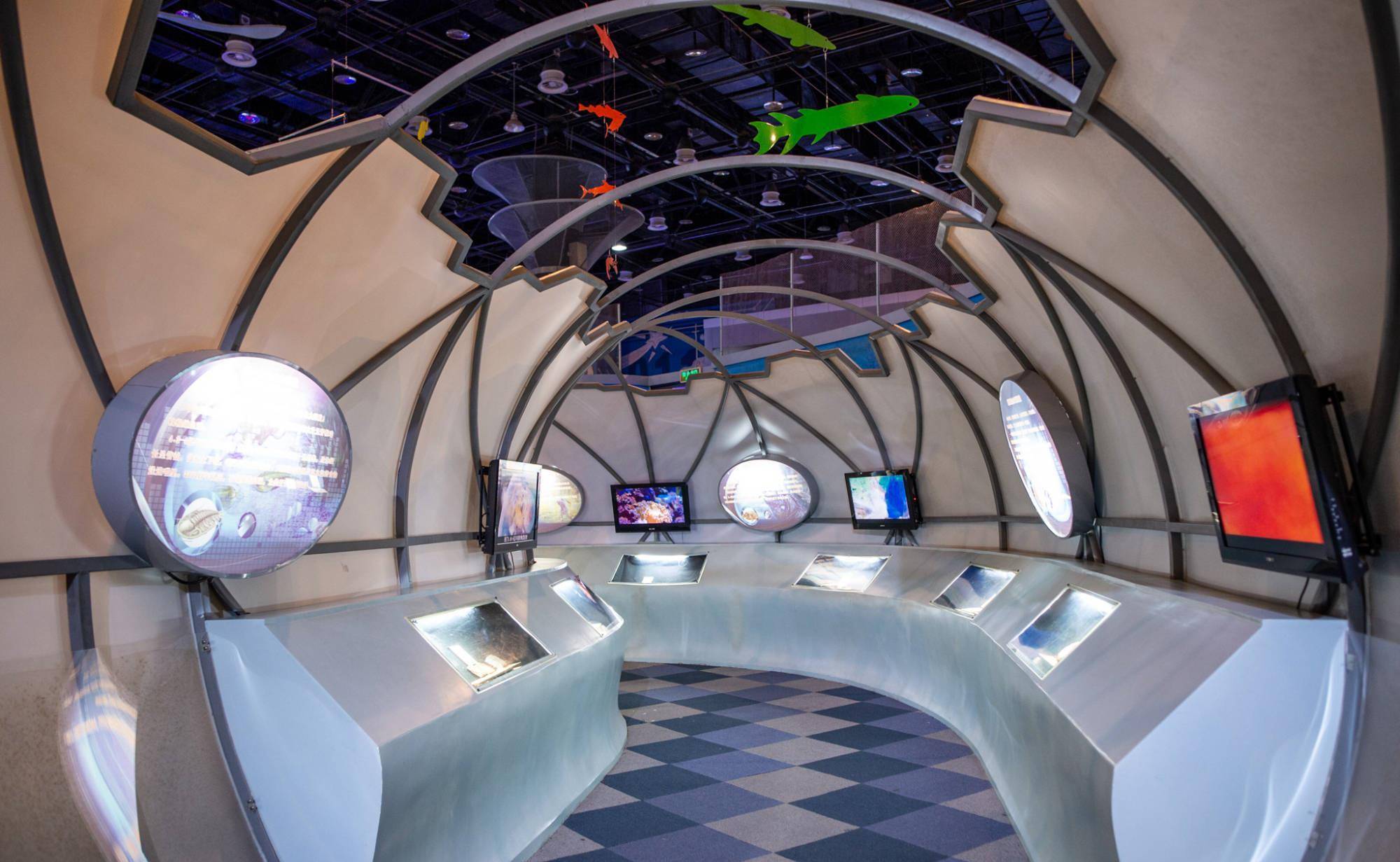 虽然是水族馆,但有些地方的展厅里没有海水和海洋生物。走进如同海底玻璃隧道般建造的结构,视觉屏幕向您展示着丰富而详尽的海洋知识。