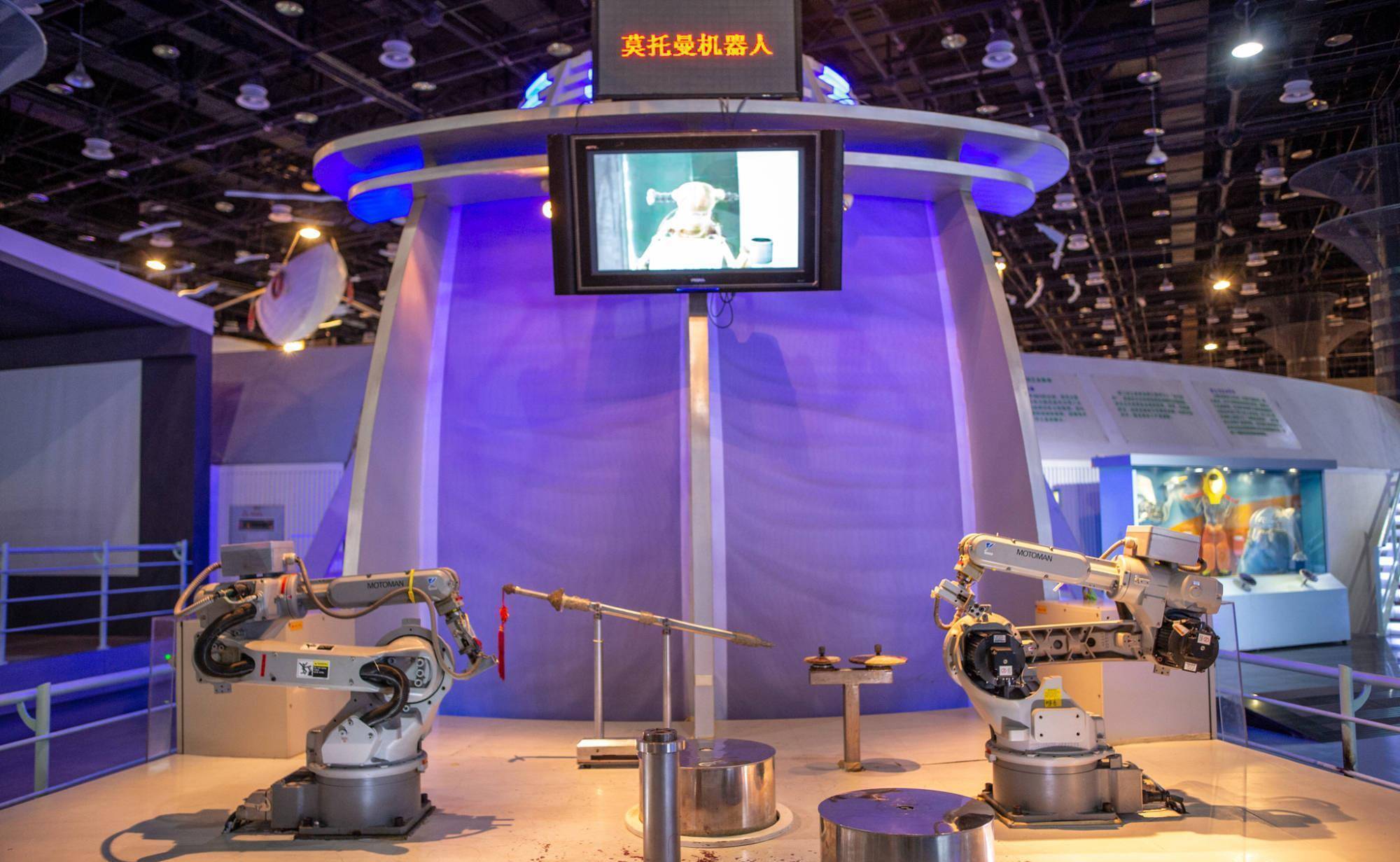 在创世文明馆可以看到很多机器人,包括Motoman工业机器人、机器人剧场、玩魔方的机器人等有趣的互动项目。