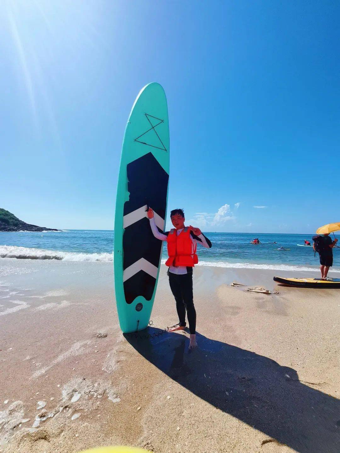 2、赠送海上冲浪游玩60分钟,冲浪硬板/冲浪SUP板+救生衣 (数量有限,轮流玩,人数不多不限时间)