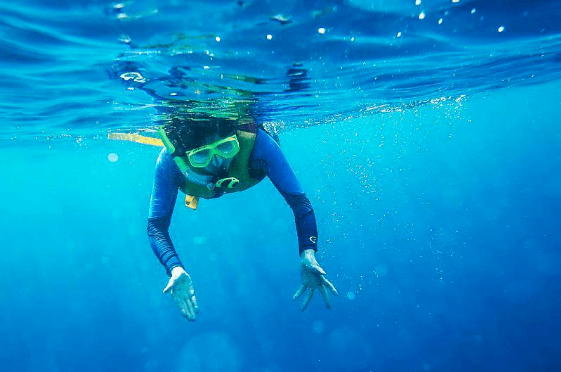 4、浮潜体验60分钟:救生衣+浮潜镜+呼吸管( 人数不多不限时间)。