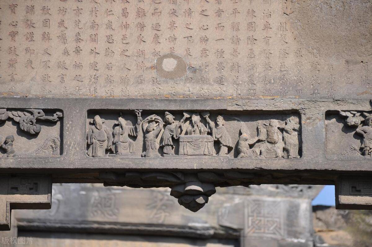 每座牌坊的正门上面分别刻有不同的碑文。上下、左右两侧也分别刻有善长芳名、立坊年代以及象征“善”、“福”、“寿”等浮雕。