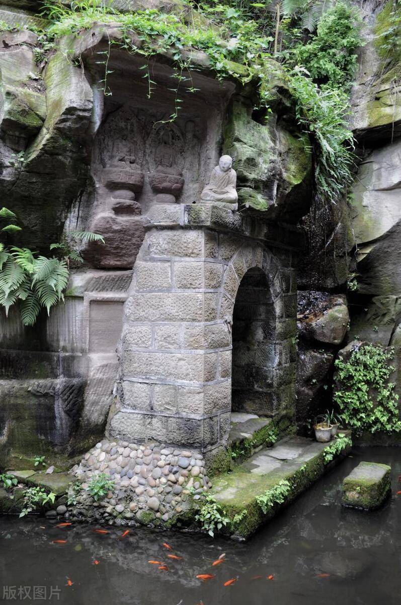 这里地势有起有伏,还能到高处俯视整个寺庙,半山腰还有一些风化或侵蚀严重的佛教造像。寺内现存大量石刻碑文和摩崖造像,年代从唐宋直到明清,寺内还有明代古桥和牌坊,很壮观。