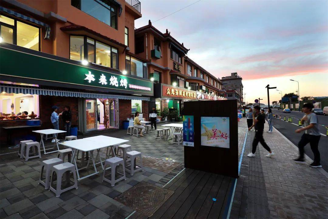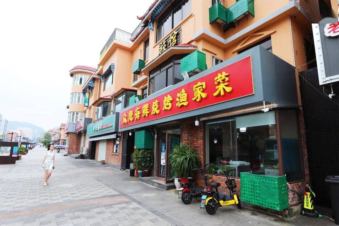 开满了特色的海鲜烧烤店铺,