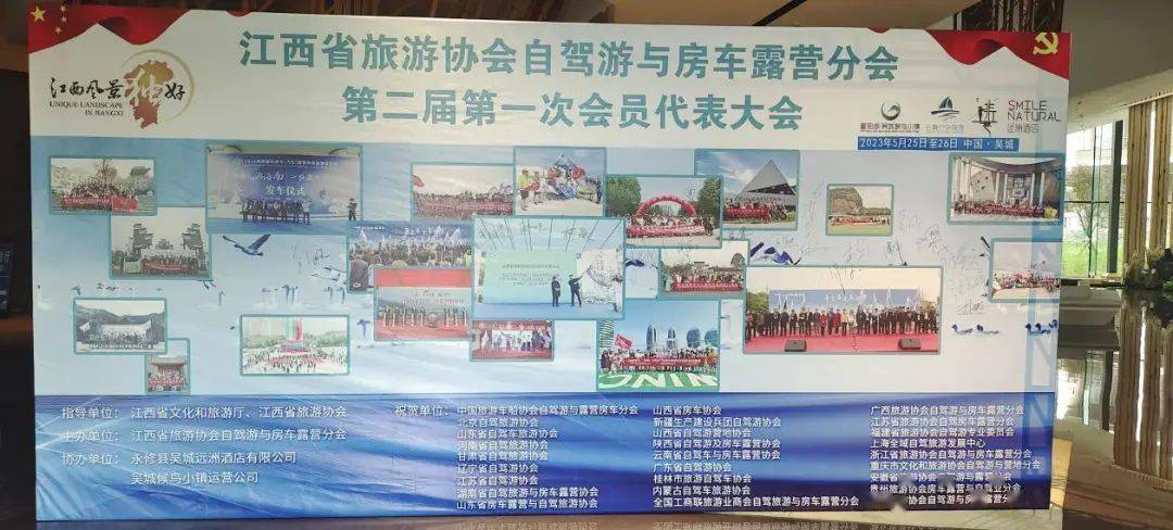 2023年5月25日--26日江西省旅游协会自驾游与房车露营分会第二届第一次会员代表大会在江西吴城镇远洲大酒店隆重召开。