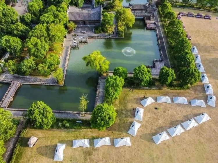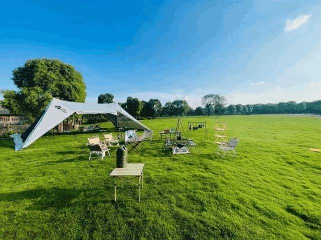 坐落于闻道园内的柚子营地,拥有超大草坪、ins风轻奢型帐篷、丰富多样的娱乐设施,是轻精致露营的绝佳选择。