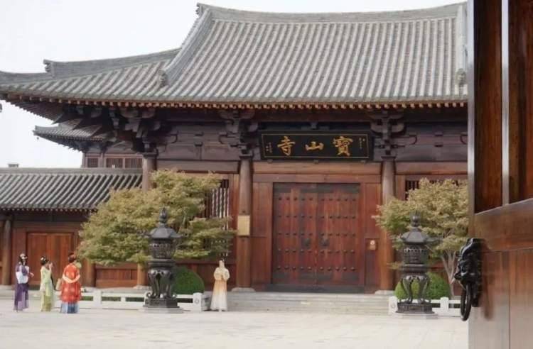 练祁河畔,唐风古韵。宝山寺始建于明朝正德六年(公元1511年),于2005年移地重建。新的宝山寺采用传统伽蓝纵轴式布局,为晚唐宫殿式建筑风格,以非洲红花梨纯木榫卯构造,结构严谨、古朴大方