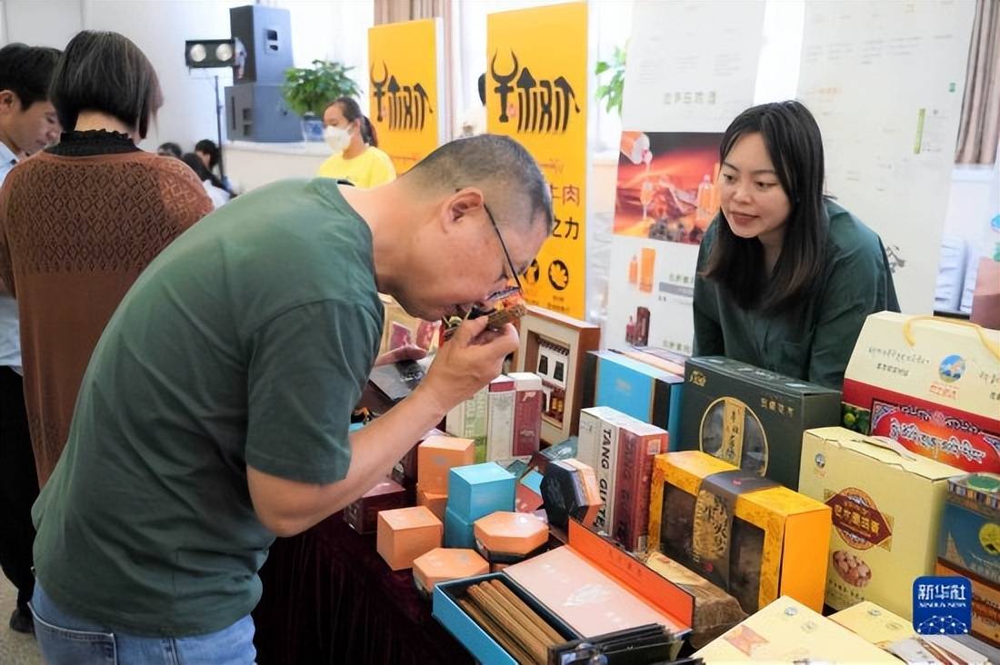 5月26日,推介会现场的工作人员为参观者介绍西藏特色产品。新华社发(王静颐摄)