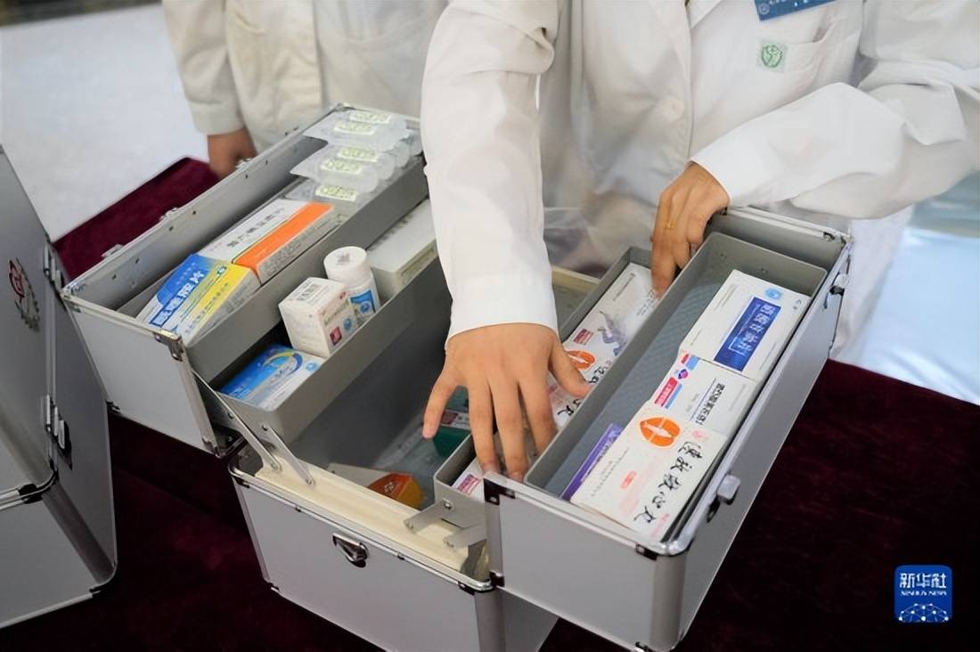 5月26日,北京高原适应研究康复中心的医护人员在介绍随车医药箱。新华社发(王静颐摄)