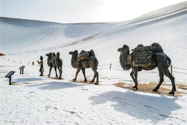 如果你看过敦煌莫高窟世界级壁画,夏天骑过鸣沙山骆驼,看过鸣沙山月牙泉的日出、日落,感受过大漠孤烟直、长河落日圆,大漠黄昏下驼队,那你应该感受一场敦煌冬天雪才算完美。