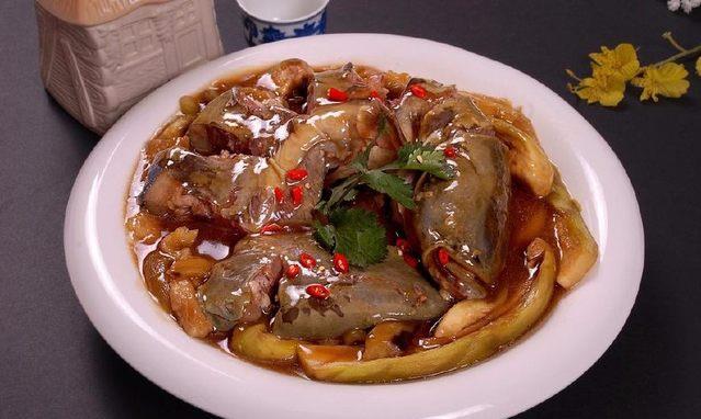 鲶鱼炖茄子:俗语说:“鲶鱼炖茄子,撑死老爷子”,这是河鲜与田园的味道,更是荤素最佳的搭配。茄子借了鲶鱼的香,鲶鱼借了茄子的味,经过厨师的妙手,鱼和茄子两种截然不同的食材,达到了味道神奇的统一。