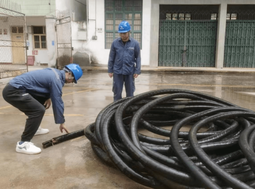 物资人员与项目管理人员在仔细核对电缆型号数量