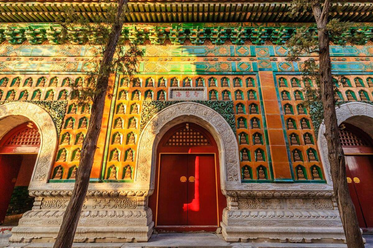 整个建筑外层全部采用黄、绿两色琉璃瓦装饰,上部还使用了少量的紫色、蓝色琉璃瓦盖顶。整座建筑色彩鲜艳,显得非常漂亮。