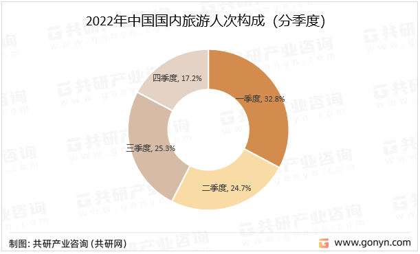 分季度来看,其中一季度国内旅游人次8.30亿,同比下降19.0%,占国内旅游总人次的32.8%;二季度国内旅游人次6.25亿,同比下降26.2%,占国内旅游总人次的24.7%;三季度国内旅游人次6.39亿,同比下降21.9%,占国内旅游总人次的25.3%;四季度国内旅游人次4.36亿,同比下降21.7%,占国内旅游总人次的17.2%。