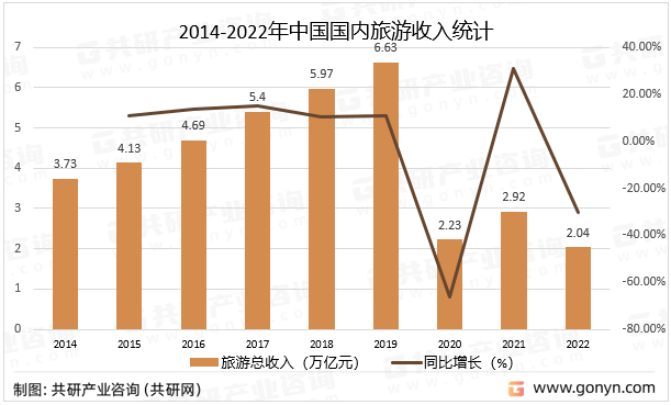 随着旅游人数的减少,旅游收入也随之减少,2022年我国国内旅游收入共计2.04万亿元,同比减少30.1%,但从长期市场来看,随着疫情的好转,未来我国旅游市场将恢复增长趋势,在我国经济发展过程中,旅游业仍然发挥着非常重要的作用。