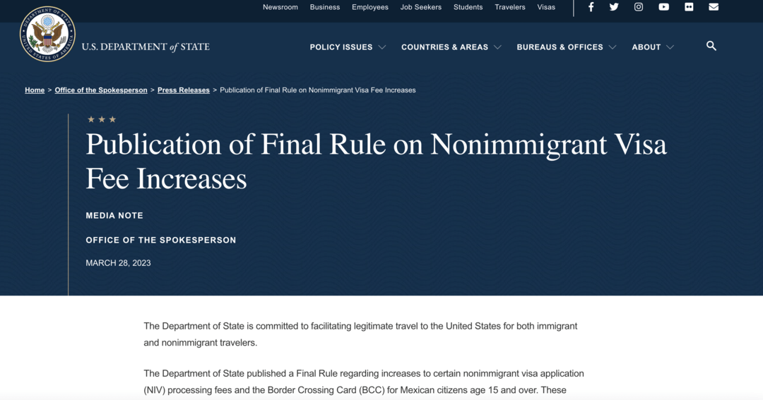美国5月30日起签证申请费上调15%