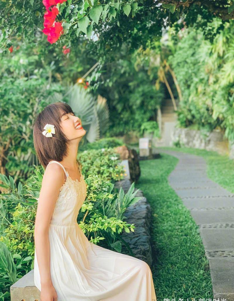 看到毛晓彤的这组照片,我们就会知道原来可爱系的造型可以打扮得如此轻松自然,简简单单的一件吊带装扮,没有任何刻意做做的样子,与身旁的景物也融合得恰到好处,头上再别上一朵应景的白色花型发夹,在短发之下的样貌简直太令人着迷了。